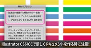 | Illustrator CS6/CCはCS5までと特色のカラーが違う? 特色の初期設定に注意! | Illustrator CS6/CCでは、Illustrator CS5以前と特色の初期設定が異なっており、設定を合わせないと、Illustrator CS5で作成した時のものと、Illustrator CS6/CCで作成した時のもののカラーが大きく異なる場合があります。 | |