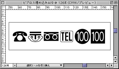 ▲Illustrator9から直接作成されたPDFをAcrobatで開いた画面です。正常にフォントが表示されています。