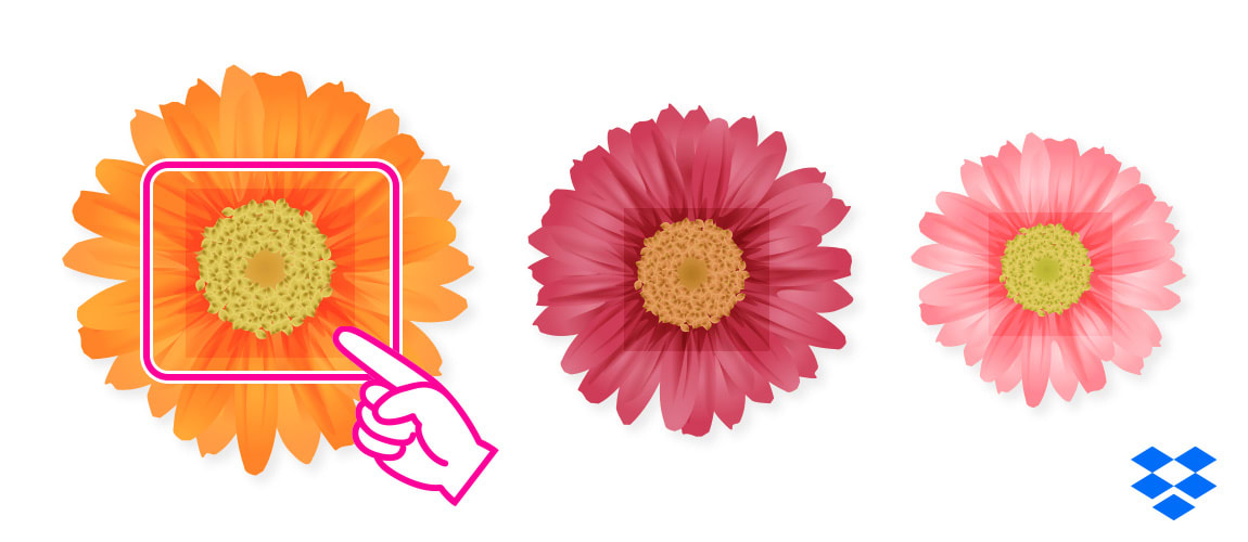 DropboxではIllustratorファイルのプレビューが見れます。今回のフリー素材はDropbox上で以下のような表示となっていて、それぞれの花の中央部分に暗い四角のオブジェクトが表示されています。