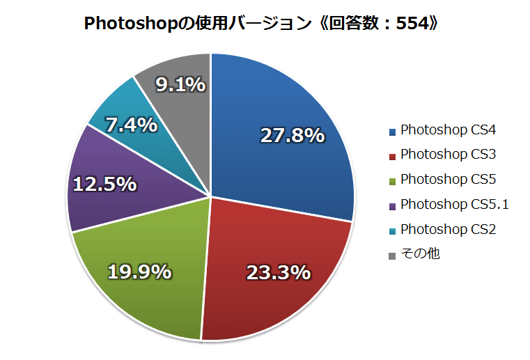 今回の調査ではIllustrator同様にCS4が利用率のトップとなった。