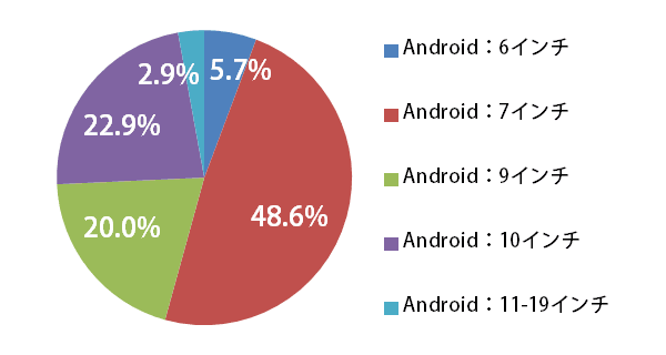 ※2:アメリカの調査会社IDCが発表した2013年1~3月期のタブレットの市場シェアはAndroidが56.5%、iOSが39.6%となっており( http://www.idc.com/getdoc.jsp?containerId=prUS24093213 )、また、MM総研の調査では2012年の国内の市場シェアでもAndroidは42.4%、iOSが52.5%と( http://www.m2ri.jp/newsreleases/main.php?id=010120130523500 )、シェアはAppleに偏っていない様子が伺える。このため、Android端末を手にするユーザーは増加すると予想される。