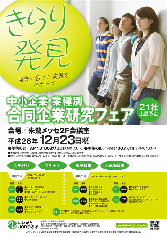 2014年12月23日に新潟市で開催される学生向けの企業研究フェアに吉田印刷所が参加します。