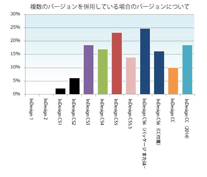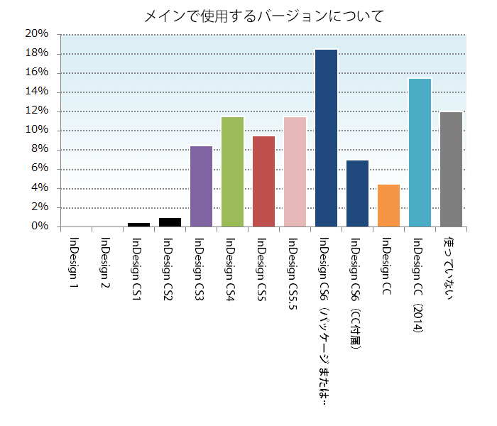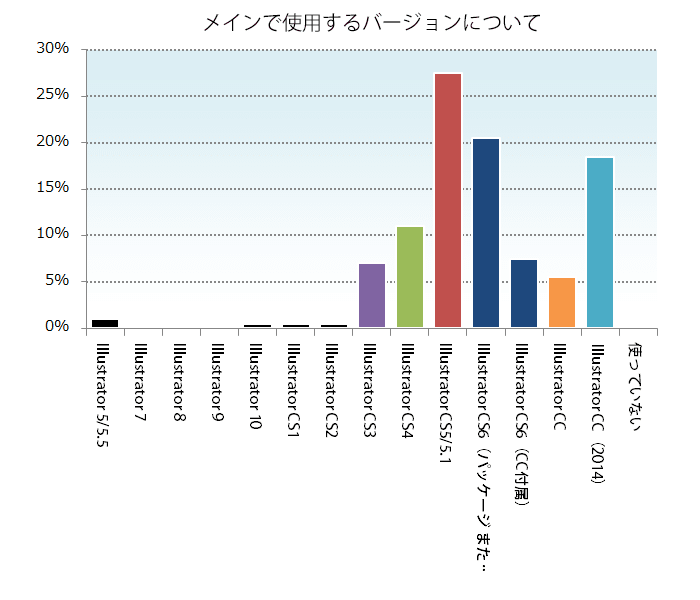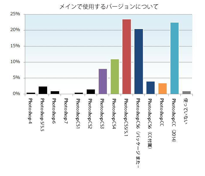 ただ、メインで使っているバージョンを見てみると、パッケージ版・CC版を合わせたCS6のユーザーがどのアプリでも多く、CS6を中心にCS5・CCのユーザーが分散している結果となった。