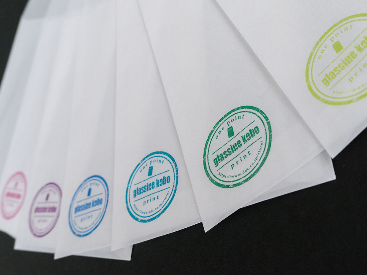 吉田印刷所、半透明のグラシン封筒へオリジナルプリント (ペーパーモール)