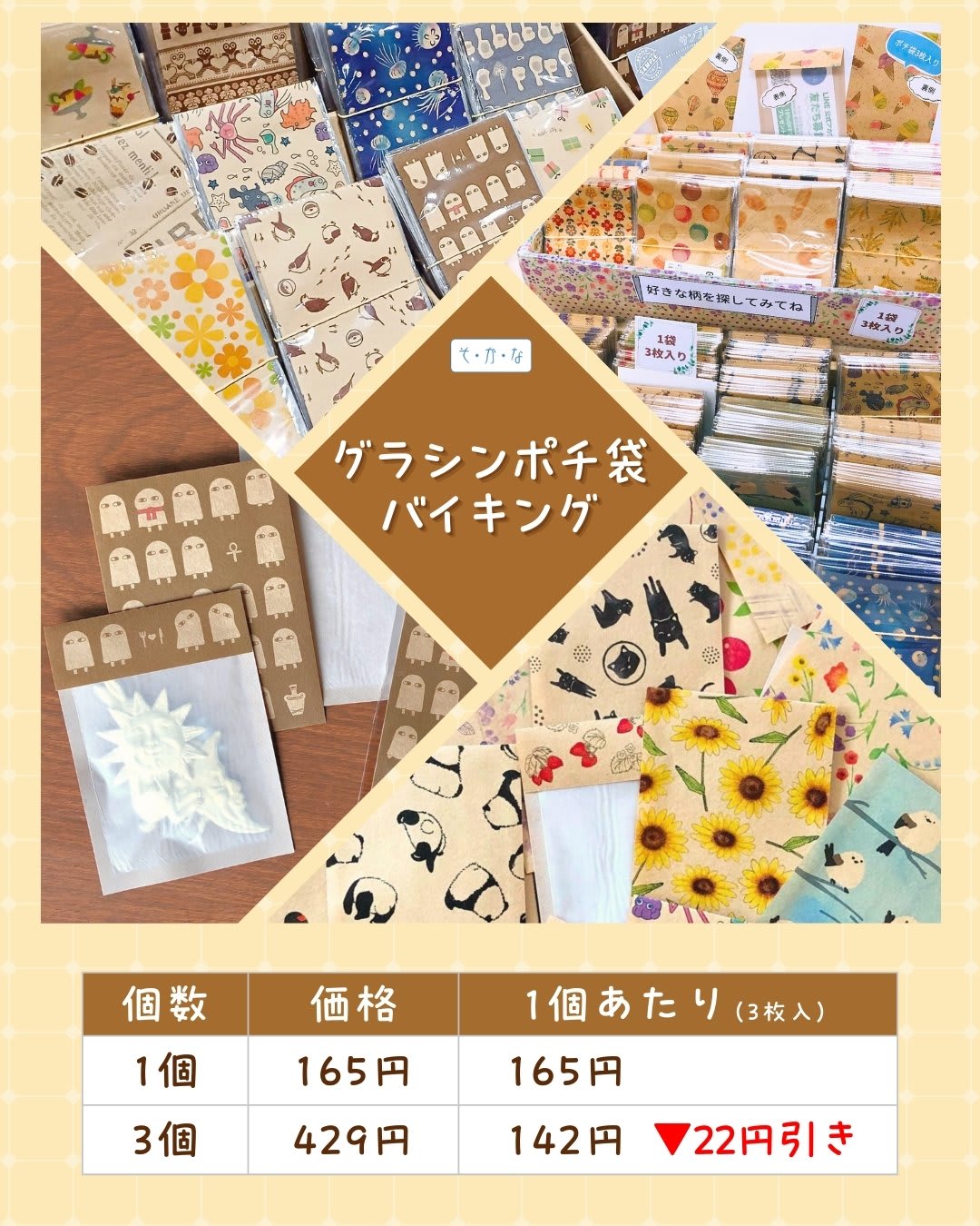 豊富なデザインから、3個選ぶとおとくになるバイキングです。