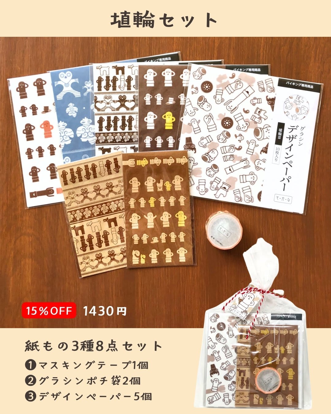 メジェドや埴輪柄、イベント恒例のバイキングなどでペーパーアイテムをお楽しみください。