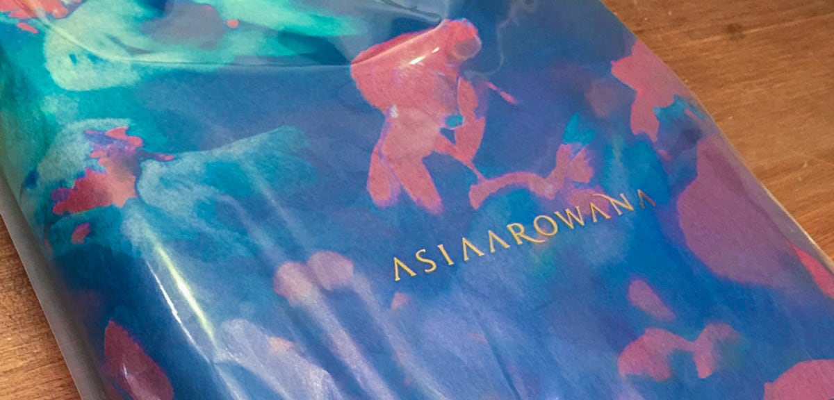 薄葉紙菊(14g/㎡)の全面に水中で戯れる金魚を印刷し、アクアリウム(水槽)を漂う熱帯魚を表現しました。ビニールの手提げ袋と組み合わせると、金魚すくいの持ち帰り用袋のようにも見えて可愛いく仕上がっています。
