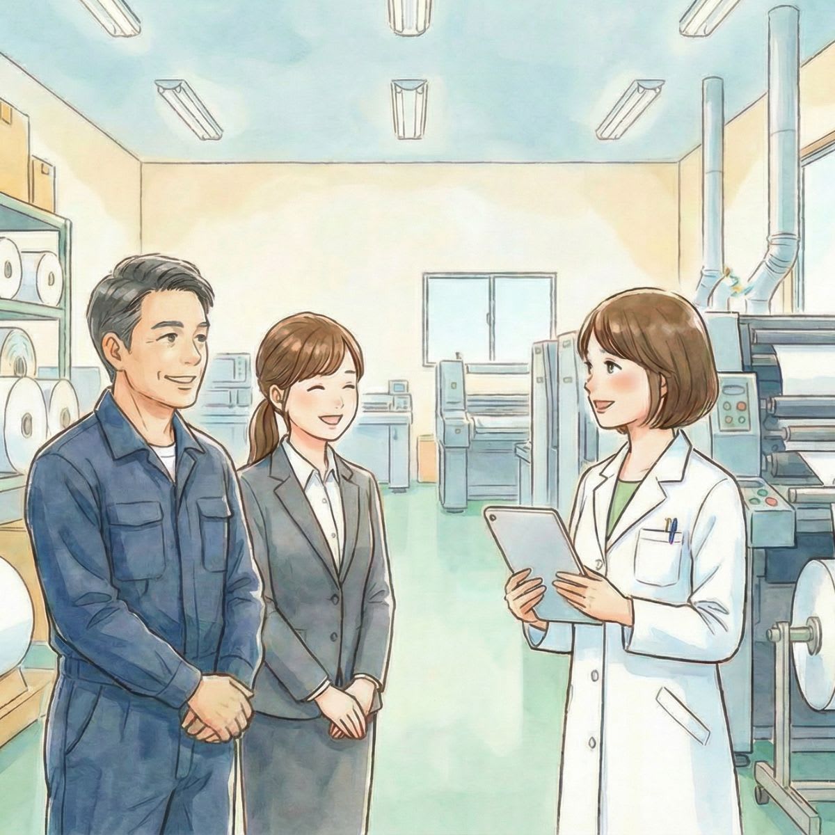 「薬袋製造40年以上の専門メーカーの私たちが、初めてのお客様にも安心してご利用いただけるよう、丁寧な対応とわかりやすいご案内を心がけています」